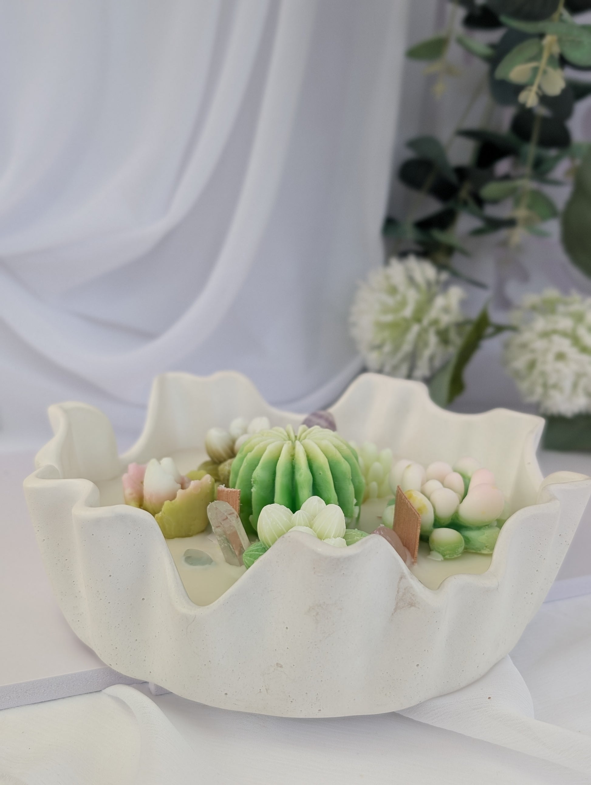 Discover the perfect luxury mothers day gifts with Hazel Glow's Hand Poured Bowl & Succulent Candle. Each large hand-poured bowl features a distinctive crinkled edge, meticulously crafted from non-toxic, water-based, fireproof resin-compound and adorned with hand-finished metallic elements.